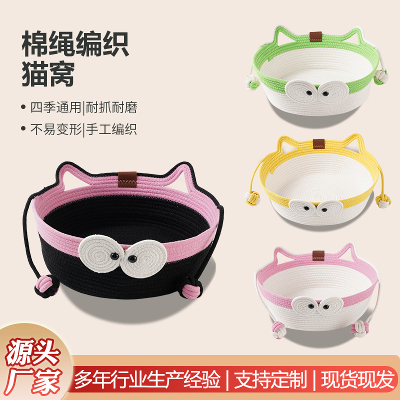 Sarang kucing jerami universal empat musim, sarang hewan peliharaan desain lucu mata hijau luar ruangan musim panas grosir