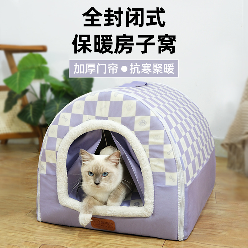 Musim dingin kandang kucing peliharaan semi-tertutup kandang anjing tikar tikar kucing empat musim universal rumah kucing Villa persediaan hewan peliharaan