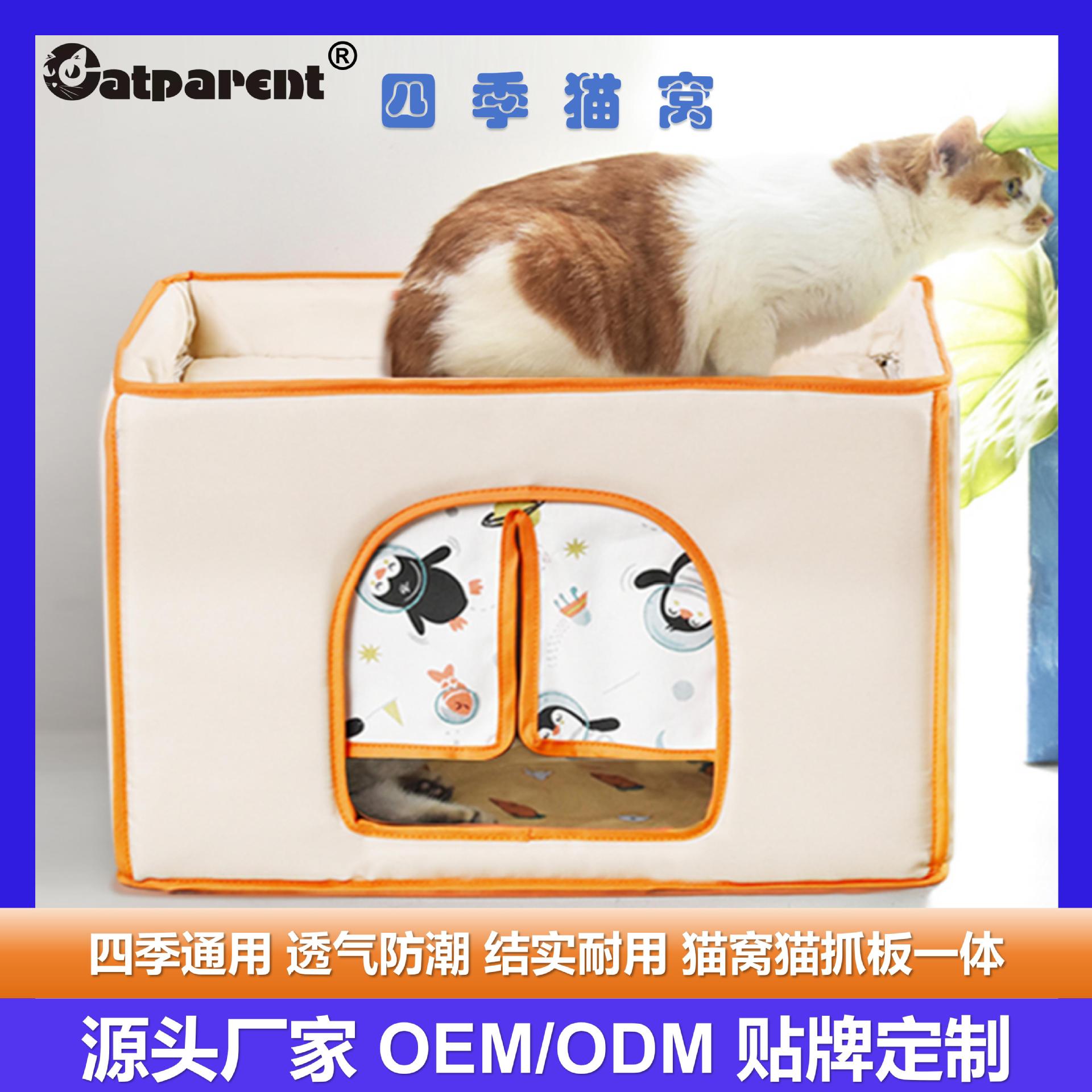 Villa kucing semi-tertutup lintas batas, tempat tidur kucing terintegrasi dengan tempat cakar, tahan aus dan tidak rontok.