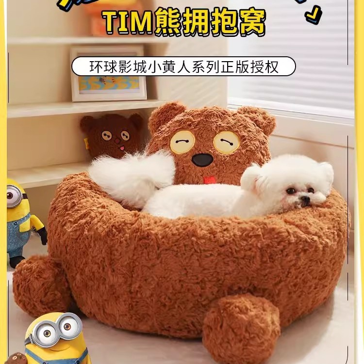 Hewan peliharaan sarang kucing hewan peliharaan TIM beruang Minion kandang boneka hangat musim dingin persediaan hewan peliharaan Teddy anjing kecil