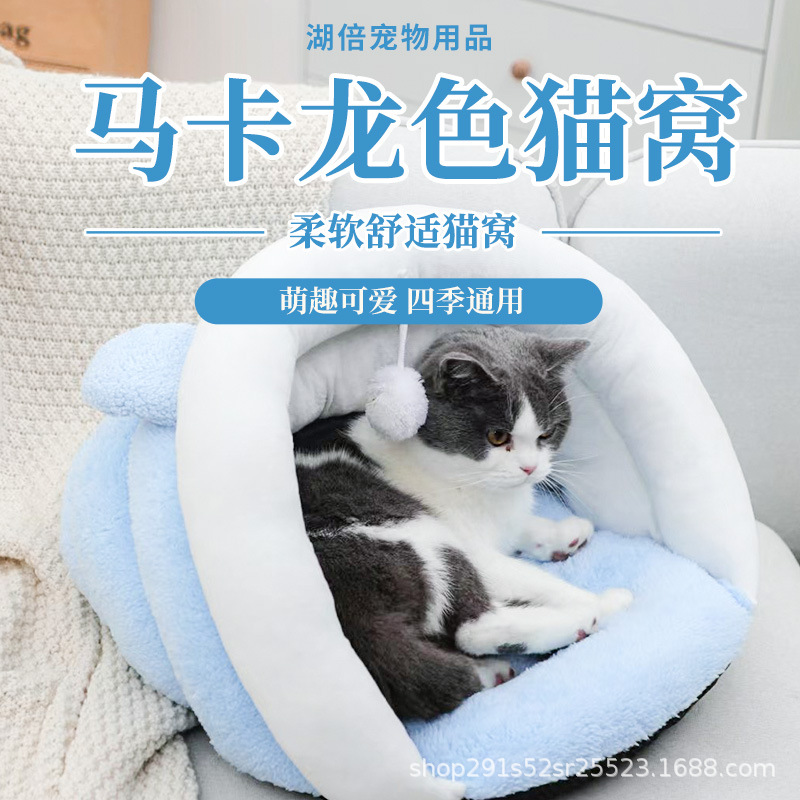 Sarang kucing musim dingin universal, empat musim hangat kucing Tempat Tidur sarang anjing tebal tikar hewan peliharaan semi-tertutup tempat tidur kucing