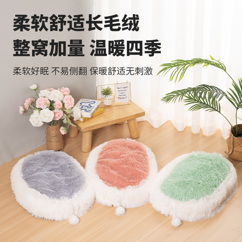 Grosir sarang kucing tempat tidur kucing hangat, sarang anjing sarang Oval tahan aus lembut nyaman empat musim persediaan hewan peliharaan pabrik
