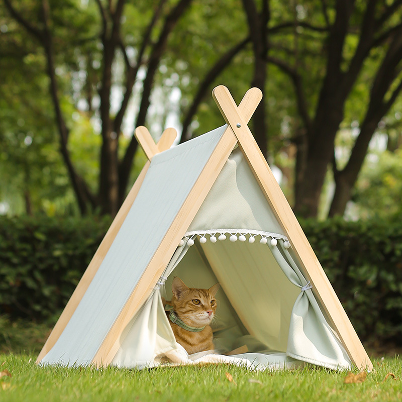 Tenda sarang kucing empat musim Universal ekstra besar dapat dilepas kayu solid yang dapat dicuci semi tertutup multi kucing Tersedia Tempat Tidur kucing
