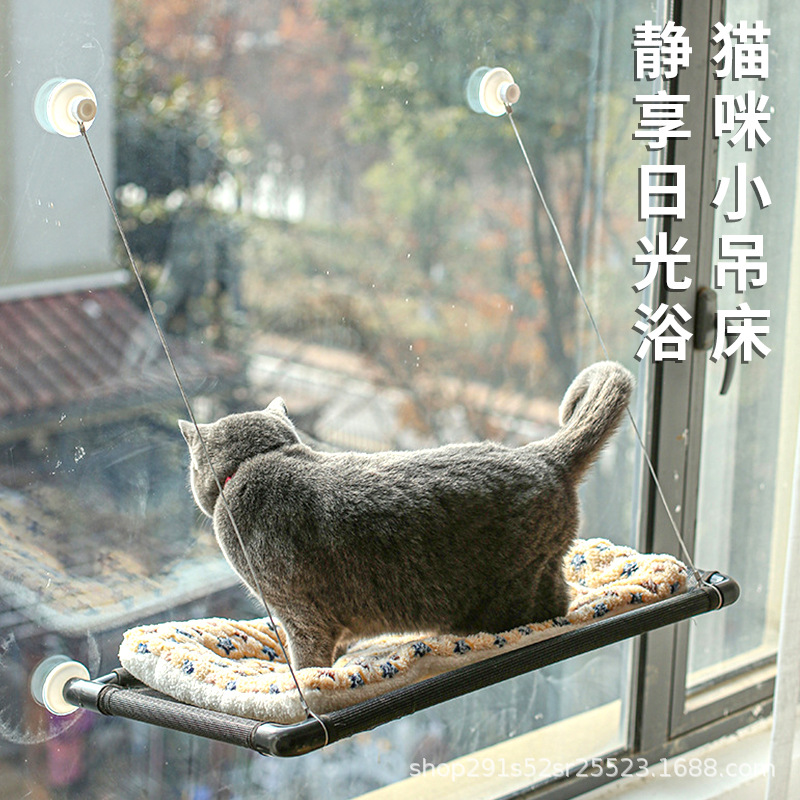 Alas tidur gantung untuk kucing, tempat tidur gantung hewan peliharaan universal, cangkir isap ayunan kucing gantung empat musim