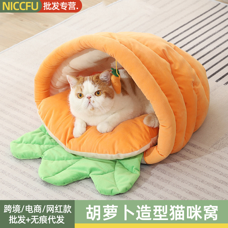 NC sarang hewan peliharaan, sarang kucing bentuk wortel dapat dilepas nyaman hangat sarang kucing musim gugur dan musim dingin