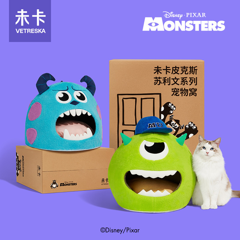 Unkhaki big eye Su Liwen seri sarang kucing hewan peliharaan tempat tidur kucing tertutup hangat musim dingin perlengkapan kucing