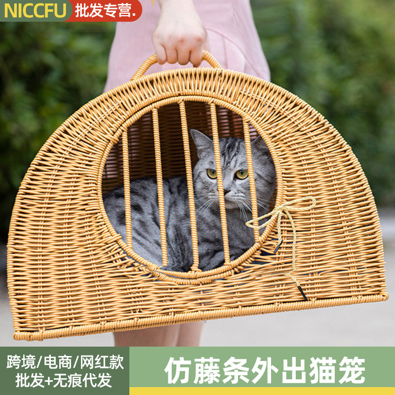 Kandang kucing seperti rotan portabel, sarang kucing tas tertutup rumah kucing ruang besar dapat dicuci