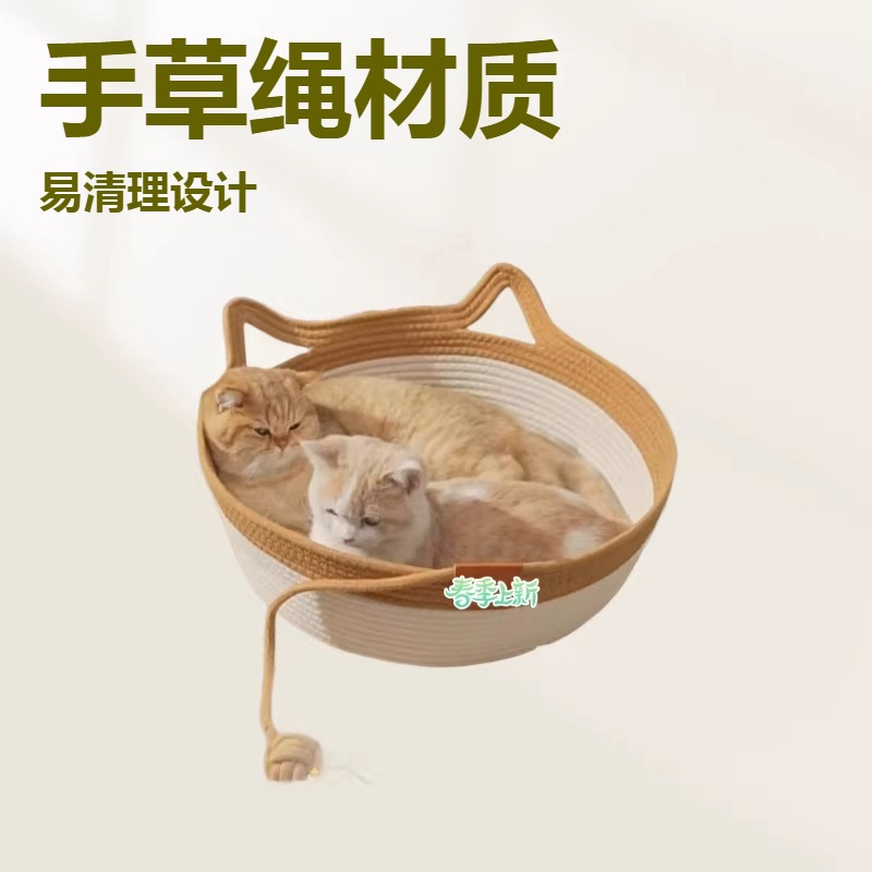 Pasokan produsen kandang kucing kandang hewan peliharaan kecil sarang tali rumput tangan bulat rumah kecil musim panas mudah dibersihkan sarang kucing