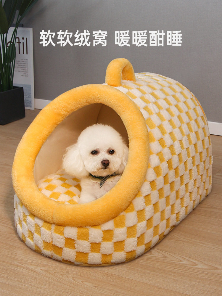 狗窝四季狗垫子房子型狗床半封闭式猫窝冬季保暖狗屋宠物用赵之吴