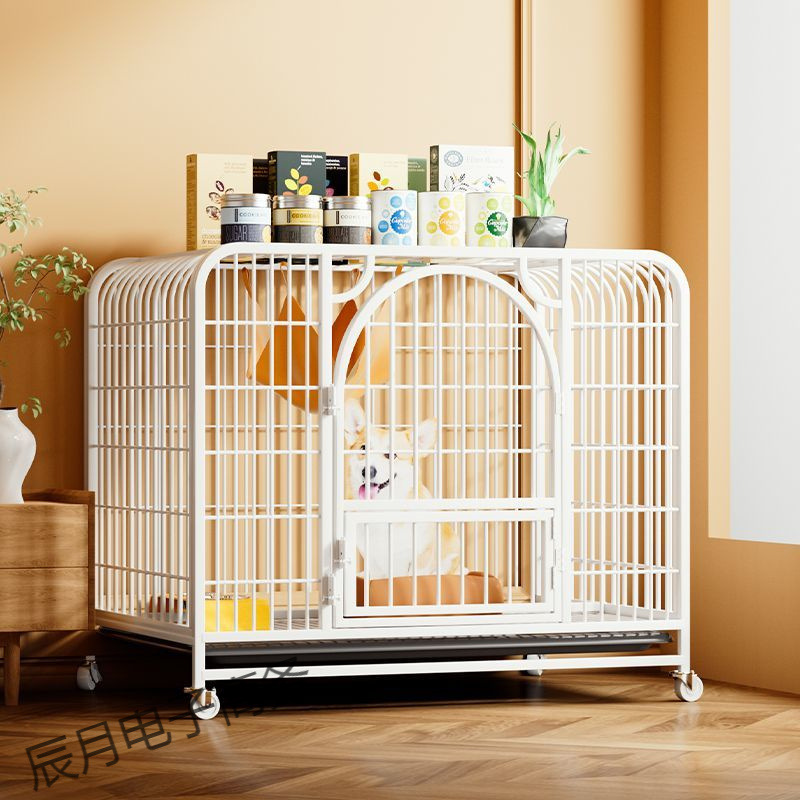 Sangkar Anjing Stainless Steel Sangkar Lipat Sangkar Anjing Dalam Ruangan dan Luar Sangkar Anjing Baja Putih Tebal Kandang Kucing Teddy dengan Perahu