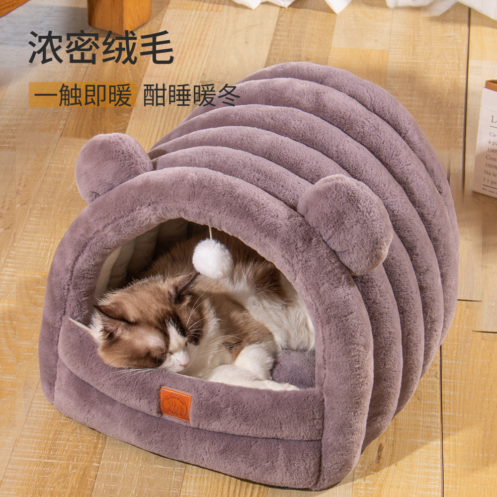 Tersedia empat musim sarang kucing universal musim gugur dan musim dingin rumah anjing dan kucing semi-tertutup tikar sarang anjing peliharaan perlengkapan hewan peliharaan grosir