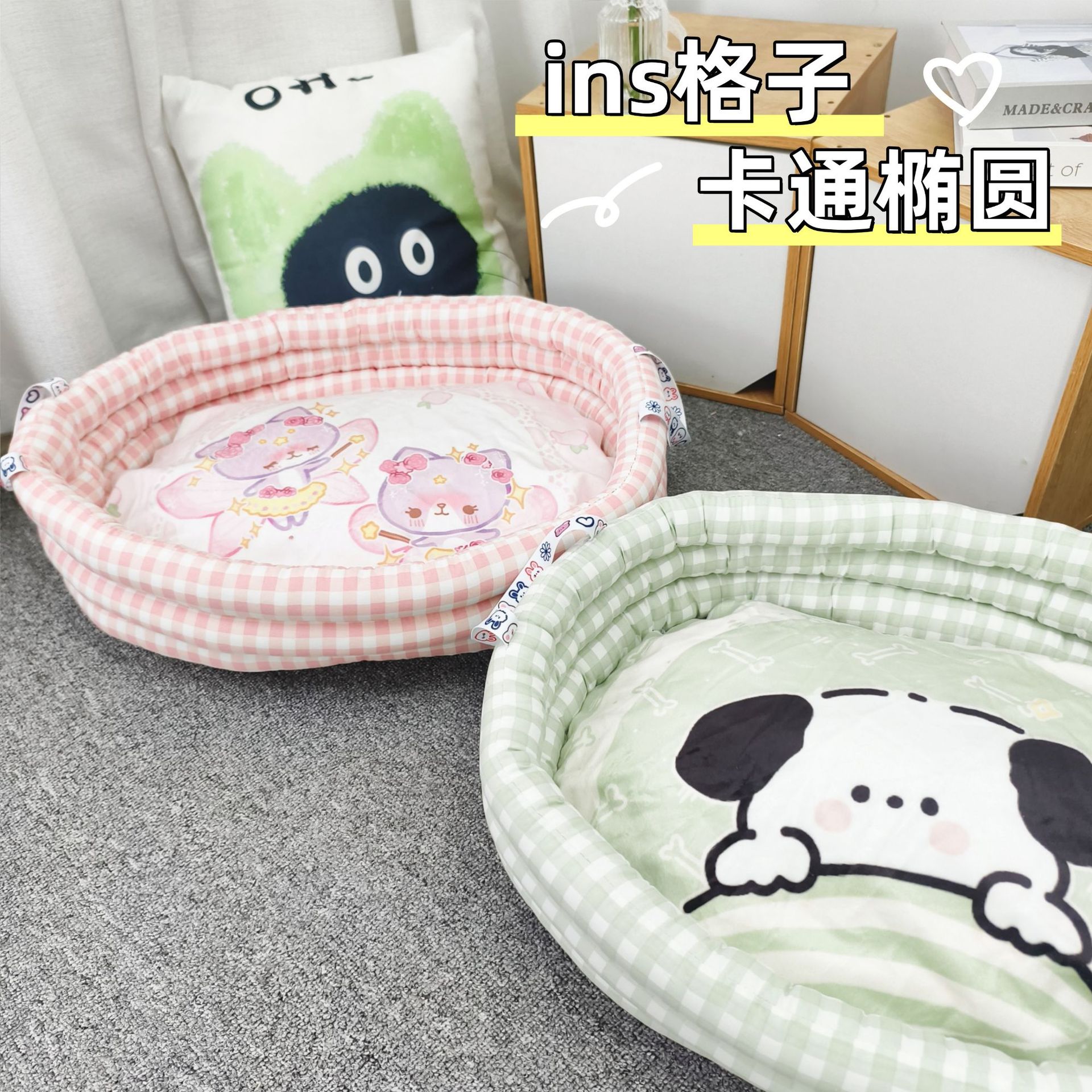 秋冬ins风格宠物床卡通狗窝猫床半封闭宠物窝保暖棉窝四季通用