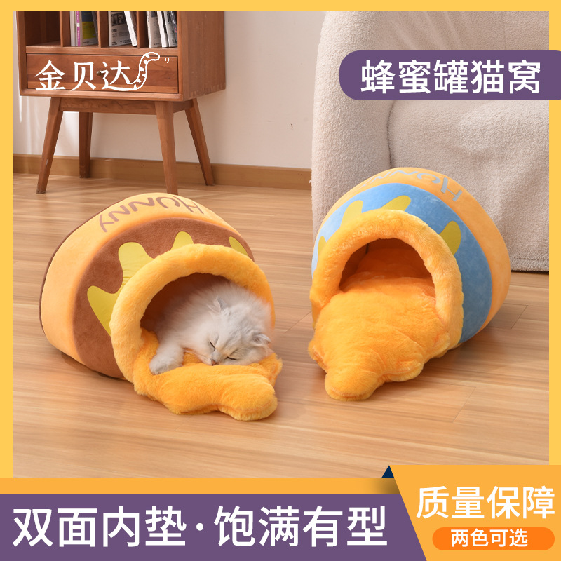 Empat musim universal pot madu sarang kucing semi-tertutup kandang kucing hewan peliharaan sarang anjing lucu kreatif tempat tidur hewan peliharaan sarang kucing grosir