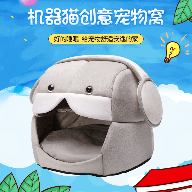 Sarang kucing populer persediaan hewan peliharaan Doraemon kreatif boneka kandang kucing sarang bersirkulasi sarang hewan peliharaan tikar kandang anjing