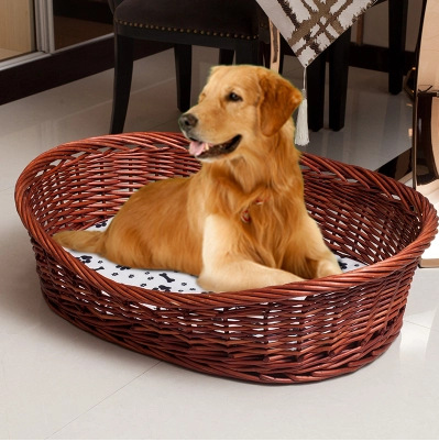 Sarang kucing hewan peliharaan rotan, tempat tidur anjing besar Samo golden retriever, sarang anjing tempat tidur empat musim universal