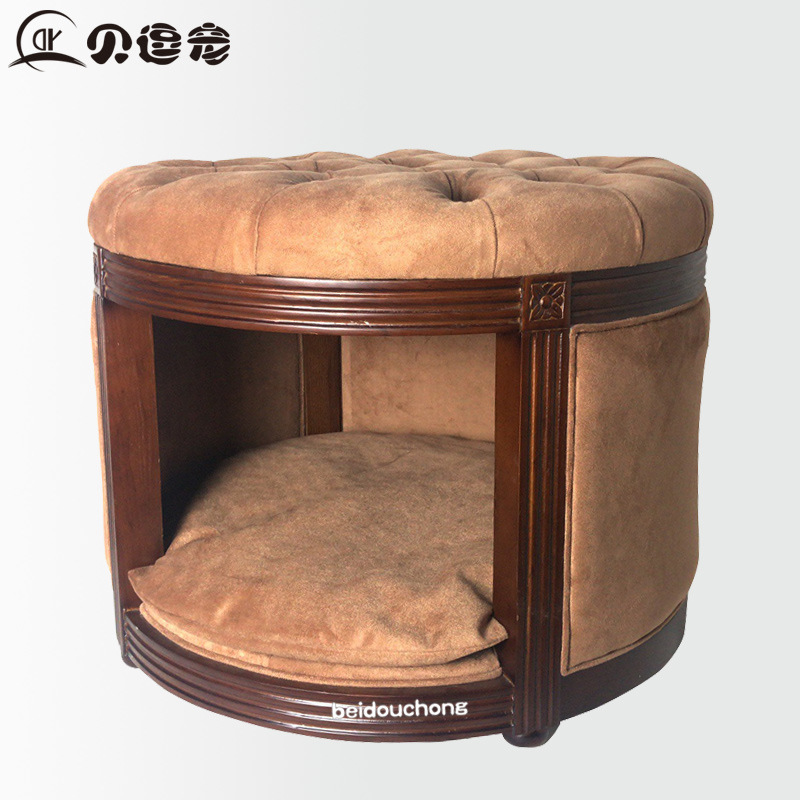 Chia u kandang hewan peliharaan gaya Eropa sofa anjing musim dingin hangat dalam ruangan tertutup sedang anjing Prancis ember kayu solid perlengkapan hewan peliharaan