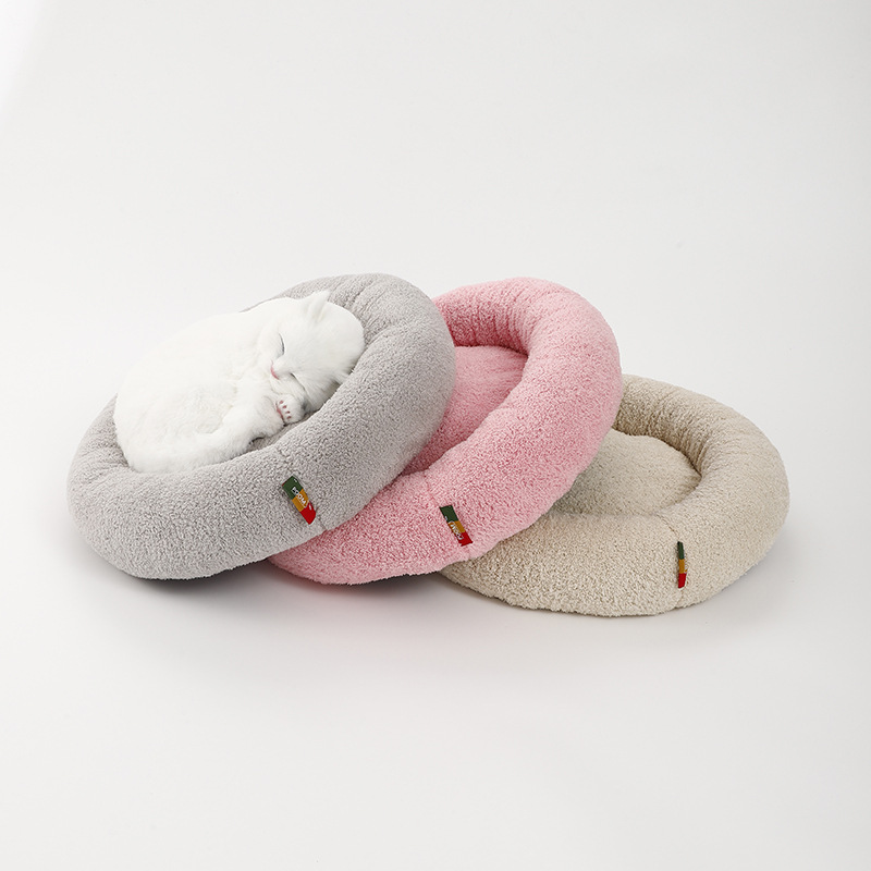 Perlengkapan kasur hewan peliharaan, sarang kucing bulat pendek hangat sederhana tebal untuk musim dingin kandang hewan tidur dalam