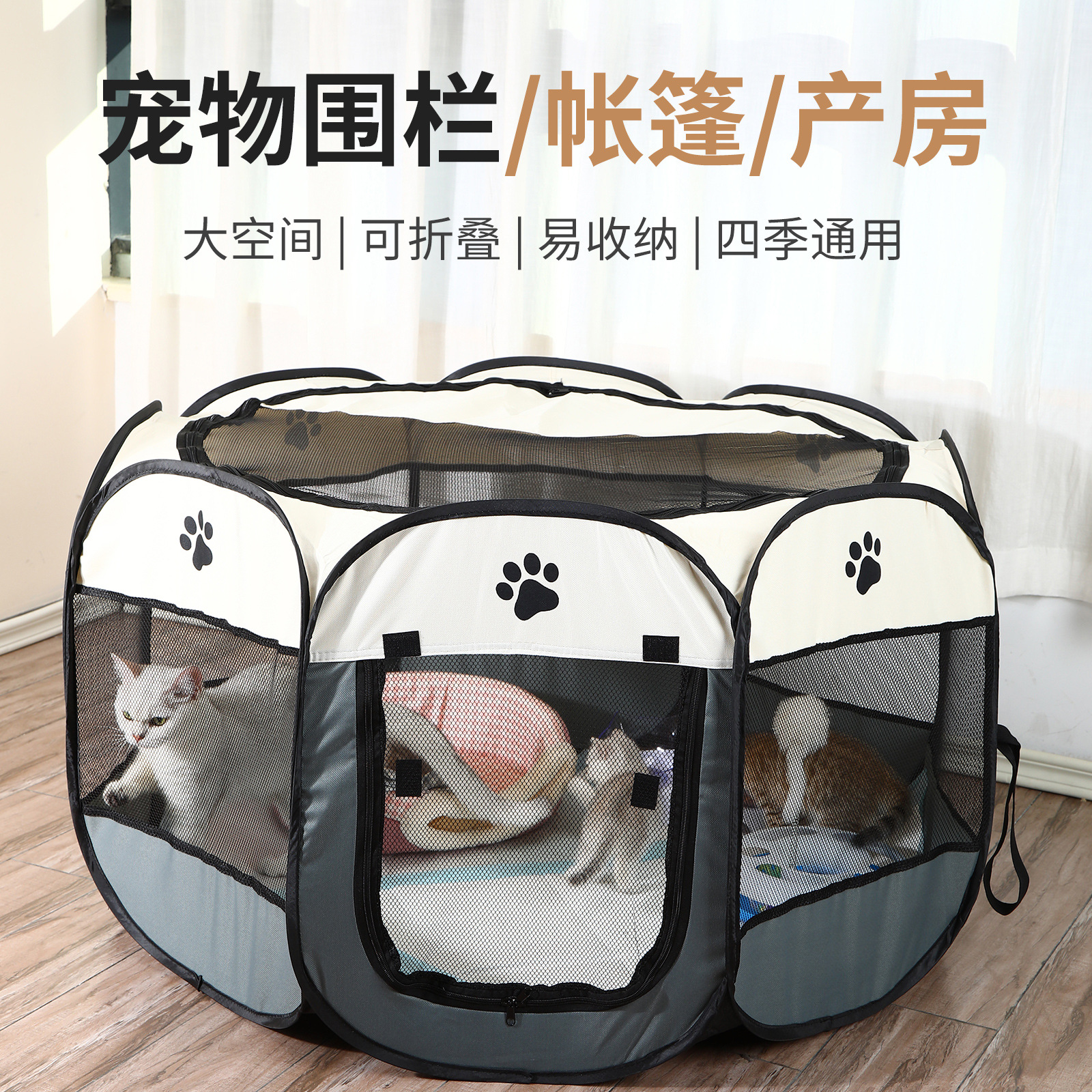 Tenda hewan peliharaan, sarang anjing kucing dapat dilipat tahan gores kain Oxford ruang pengiriman anjing pagar hewan peliharaan oktagonal