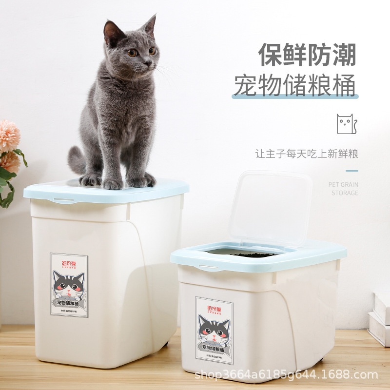 Ember penyimpanan makanan kucing, kotak penyimpanan rumah tangga, wadah makanan kucing anti lembab, ember penyimpan makanan kucing
