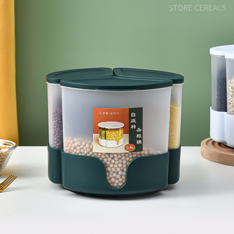 Ember beras berputar, tiga kisi multi-grain tangki penyimpanan beras, anti serangga, anti kelembaban, pot beras dapur rumah tangga, tangki multi-grain