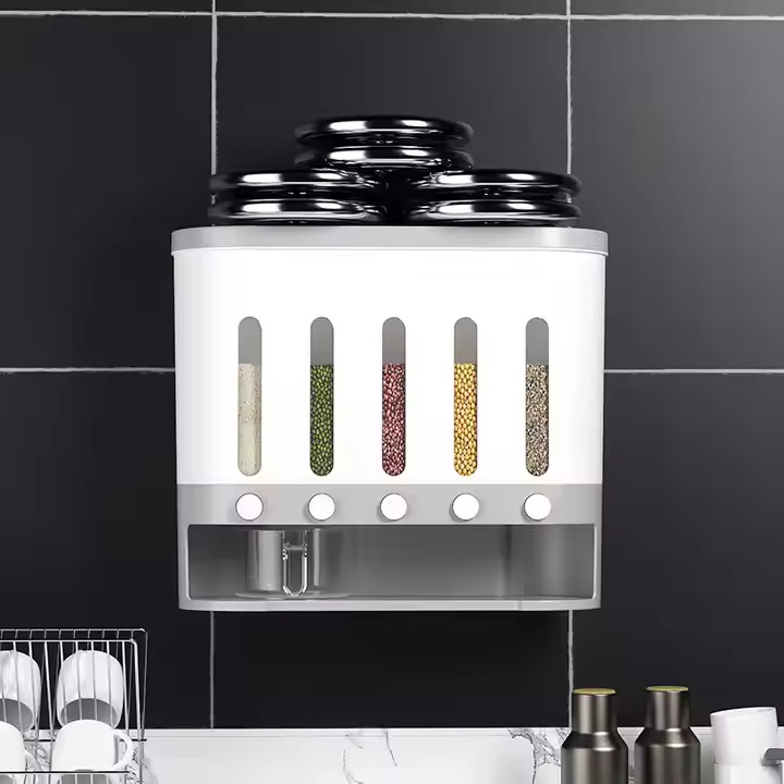 Ember beras kotak-kotak sederhana yang dipasang di dinding, ember beras tahan serangga, Penyimpanan gandum kisi, ember beras plastik 10kg