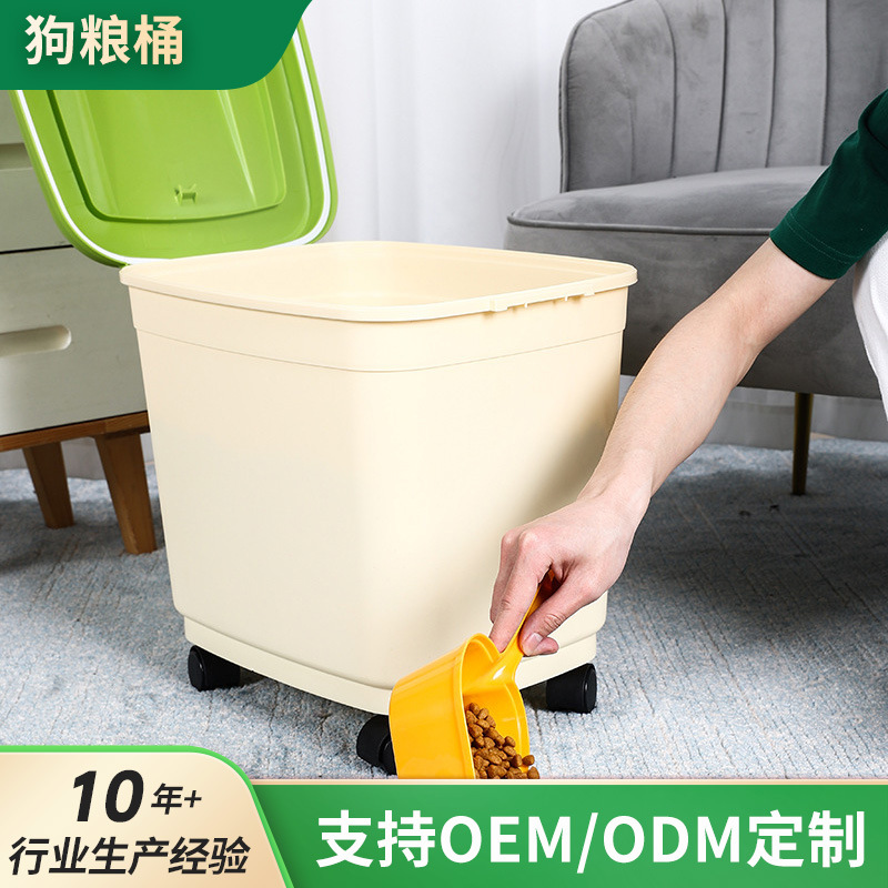 Pemesinan khusus ember makanan anjing dengan katrol 10kg ember makanan anjing tipe persegi tahan serangga rumah tangga tahan kelembaban 27L ember beras