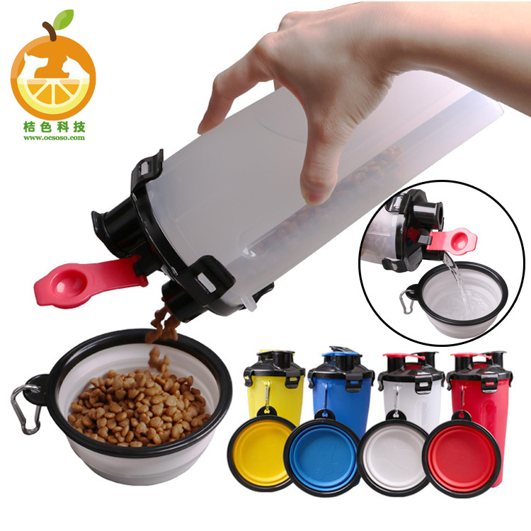 Botol minum kucing dan anjing penggunaan ganda, cangkir air dan makanan mangkuk lipat perlengkapan hewan peliharaan botol penyimpanan makanan portabel untuk keluar grosir