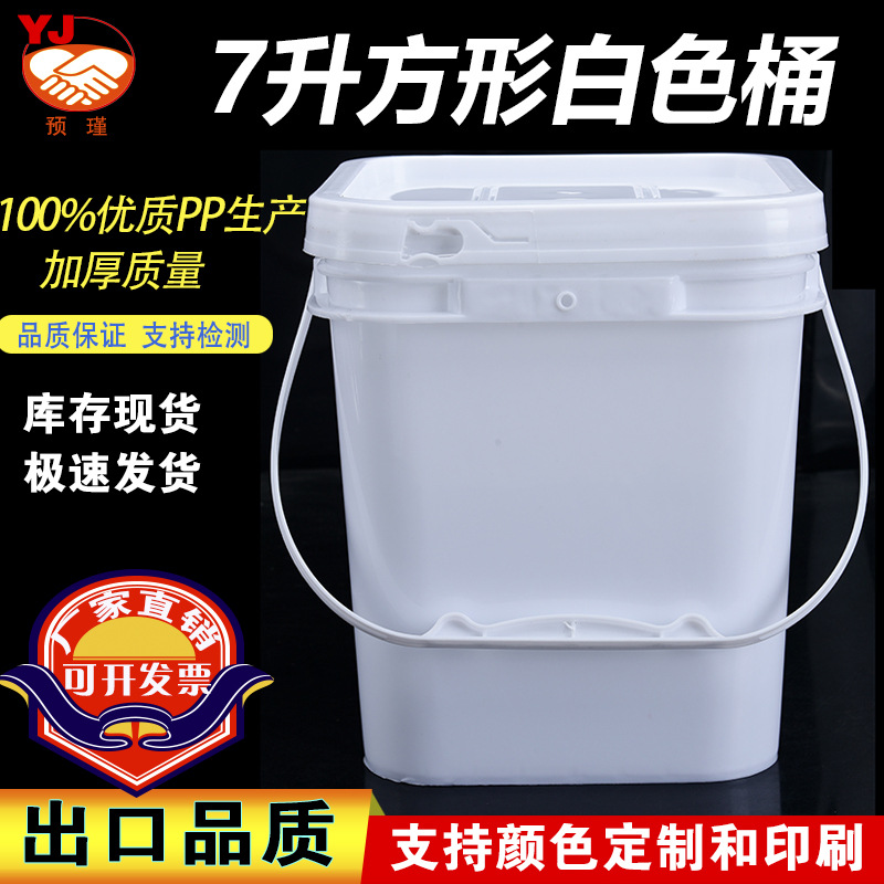 Putih 7 L persegi barel makanan kelas plastik kemasan barel 7kg lapisan makanan kucing anjing makanan barel lateks kemasan cat barel