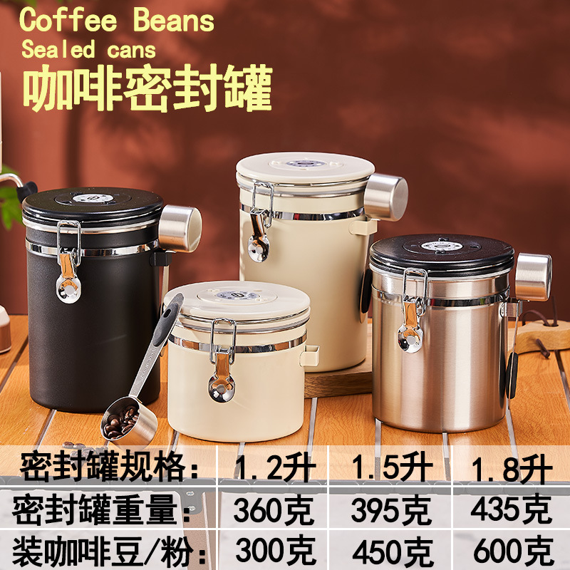 Tangki Penyimpanan Biji Kopi Stainless Steel 304 Tangki Penyimpanan Segel Kaleng Penyimpanan Bulat Tangki Penyimpanan Makanan Kucing dan Anjing