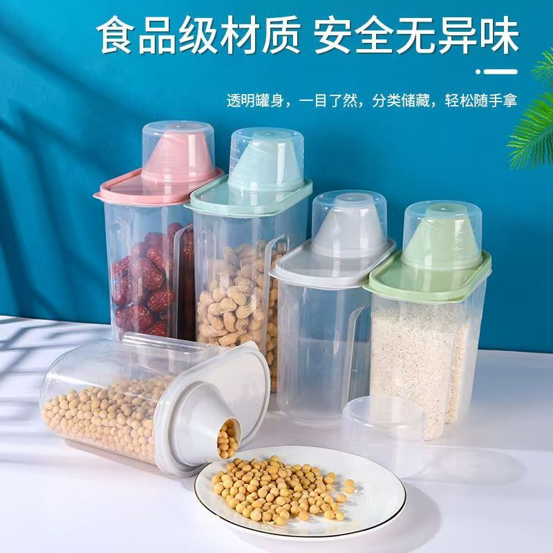 Kaleng Sereal Kaleng Makanan Ringan Dapur Kaleng Rempah-rempah Kacang-kacangan Kotak Penyimpanan Plastik Transparan untuk Makanan Tahan Air dan Serangga