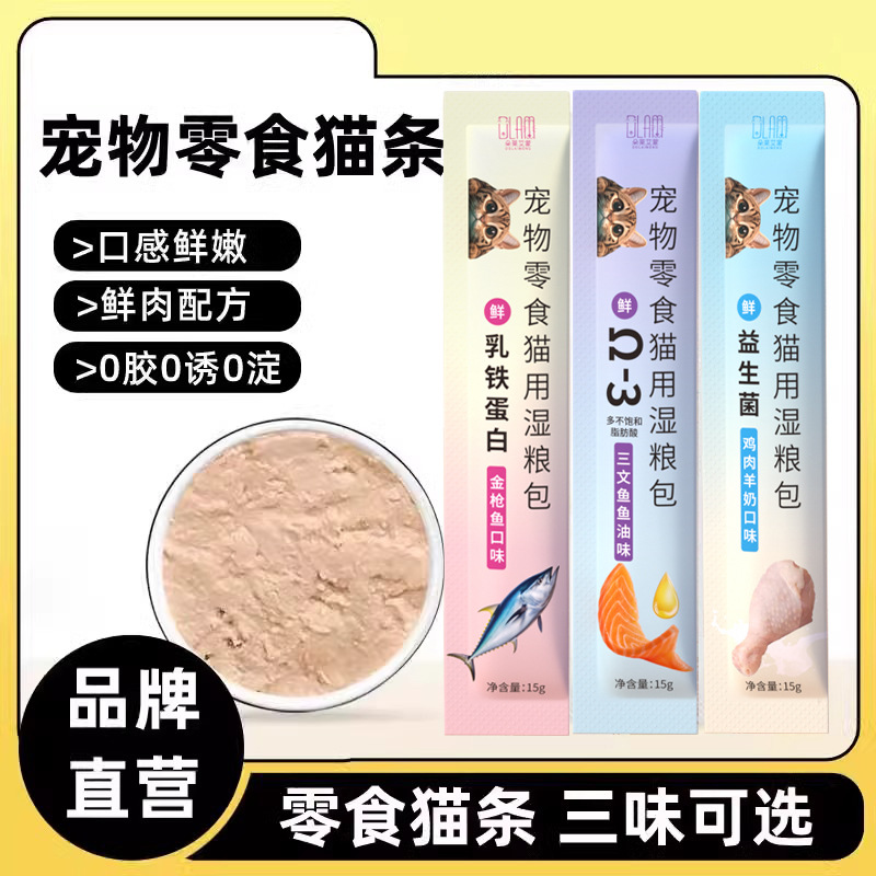 Camilan Kucing 15g Menjadi Kucing Anak Kucing Berair Interaktif Kucing Pelembab Makanan Basah Rambut Lemak Camilan Kucing Kalengan