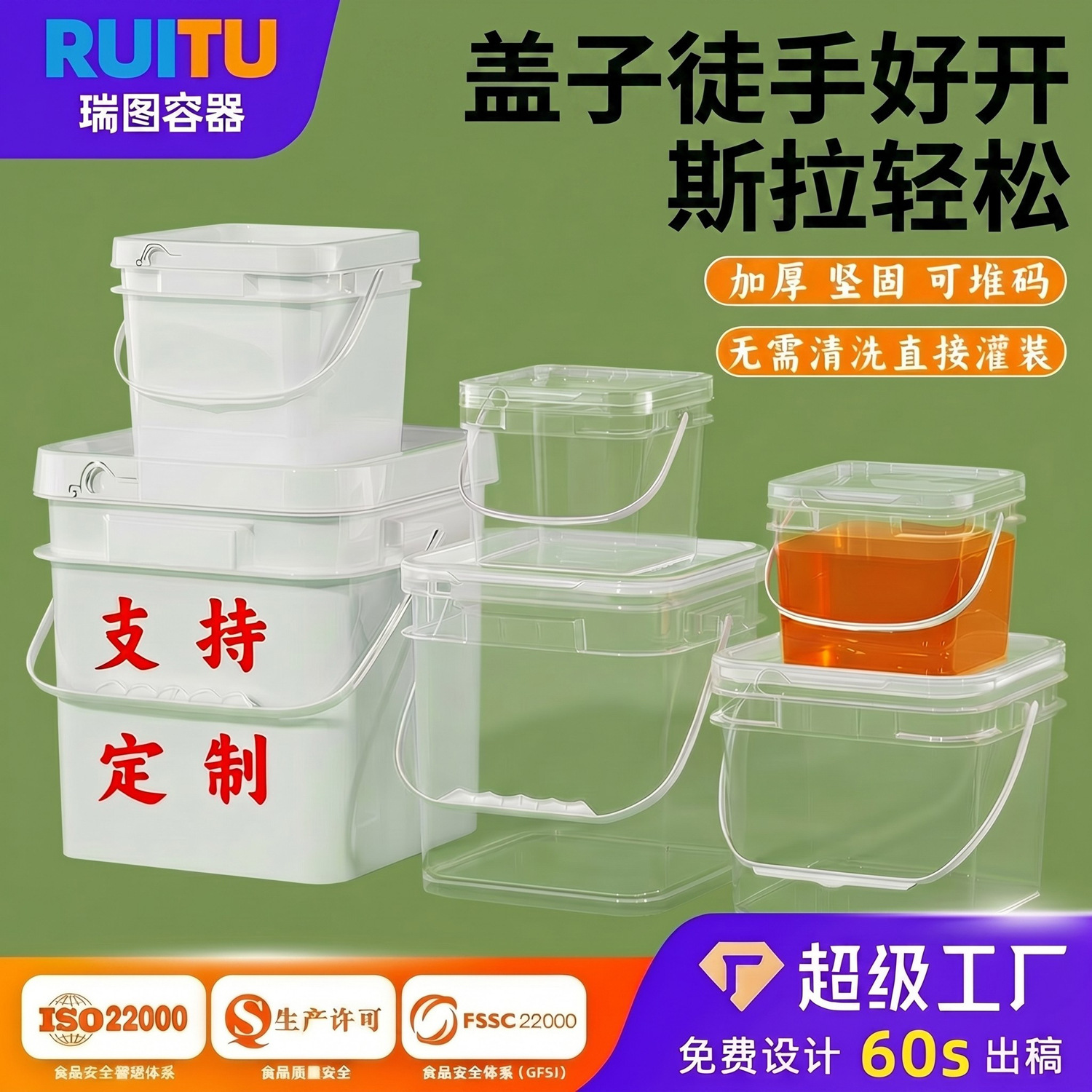 Ember plastik persegi transparan 1L2L, ember plastik persegi 5l16 liter 25kg, ember plastik persegi tebal untuk makanan kucing, deterjen cucian, ember persegi untuk makanan.