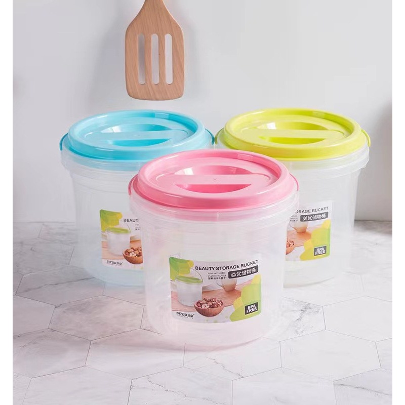 Tangki Plastik Tertutup Transparan Tangki Penyimpanan Beras Rumah Tangga Tahan Air