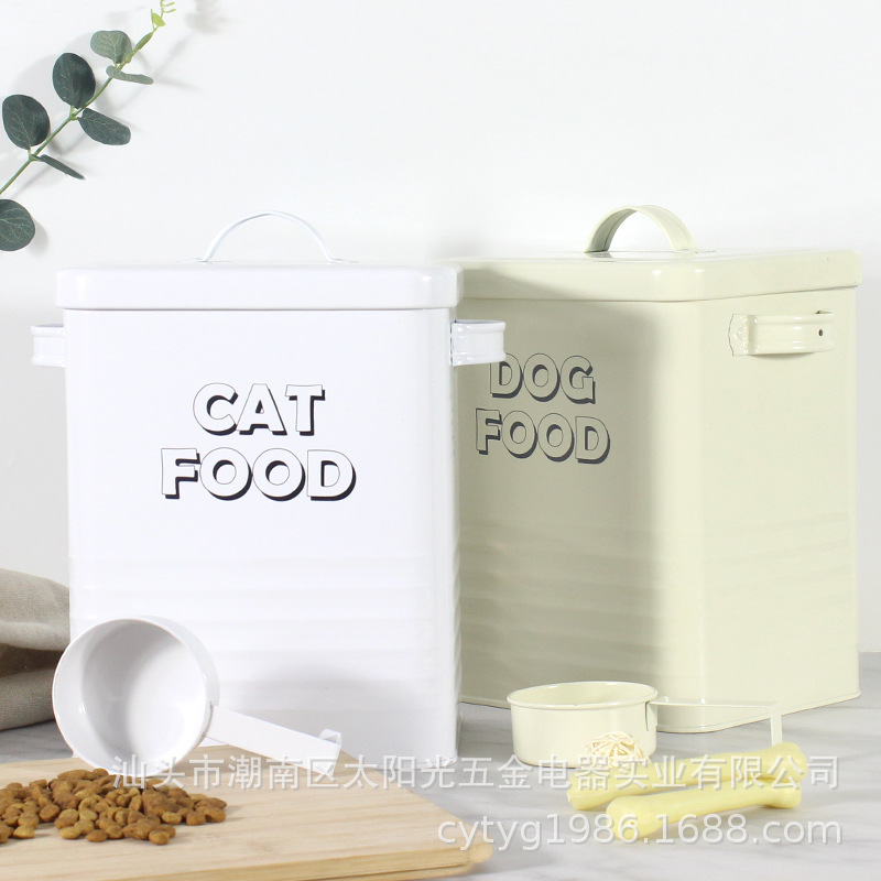 Lintas batas e-commerce besi penyimpanan gandum hewan peliharaan ember tersegel kedap air kemasan hadiah makanan kucing anjing makanan ember nasi kotak roti