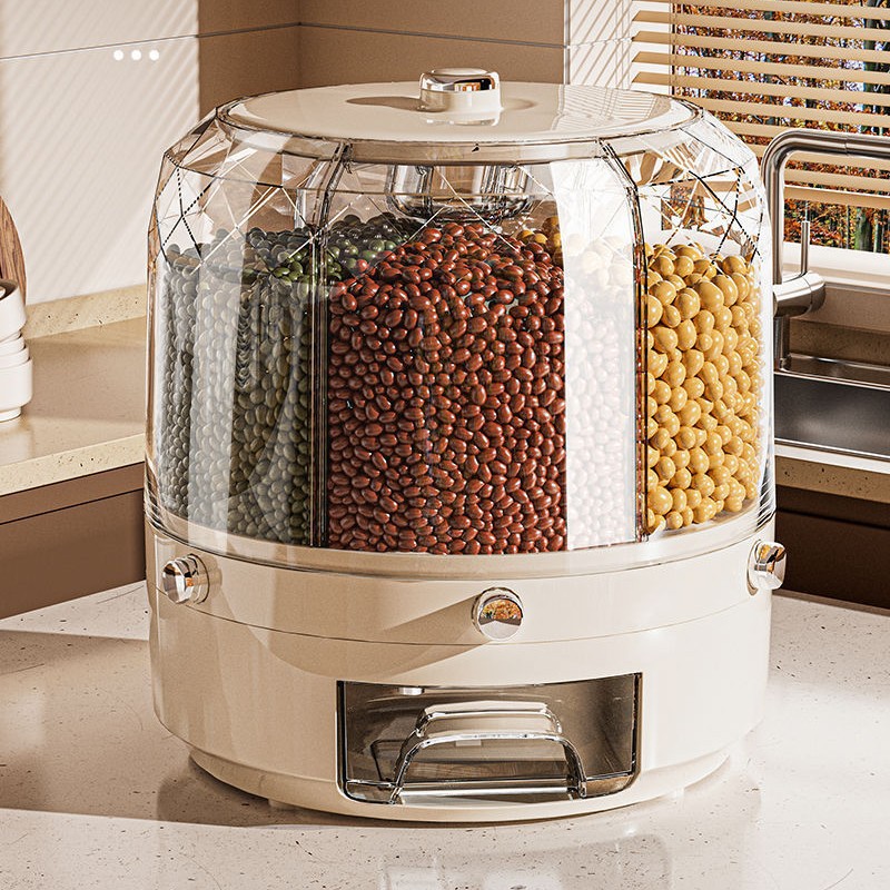 Ember Beras Berputar Kotak Penyimpanan Sereal Sereal Multi Fungsi Kotak Penyimpanan Sereal Anti Serangga dan Tahan Air Ember Beras Penting untuk Rumah Tangga Dapur