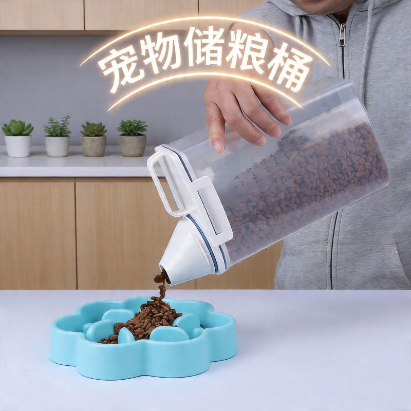Persediaan hewan peliharaan Amazon ember makanan anjing baru ember tersegel ember penyimpanan makanan hewan peliharaan skala gratis cangkir makanan kucing grosir