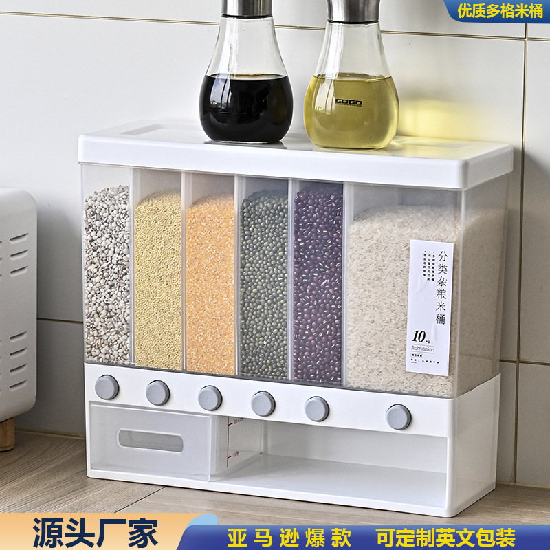 Grid kotak penyimpanan beras, panci nasi kotak penyimpan beras rumah tangga, anti serangga, anti lembab