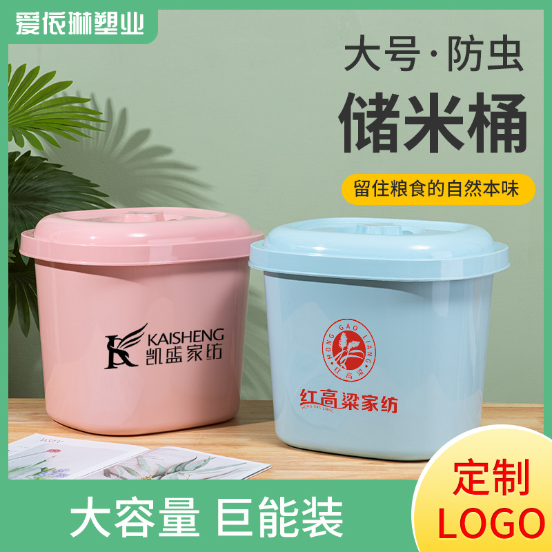 Ember penyimpanan nasi plastik besar, ember mie tertutup tebal, anti lembab rumah tangga, hadiah aktivitas, ember nasi dapat dicetak, grosir