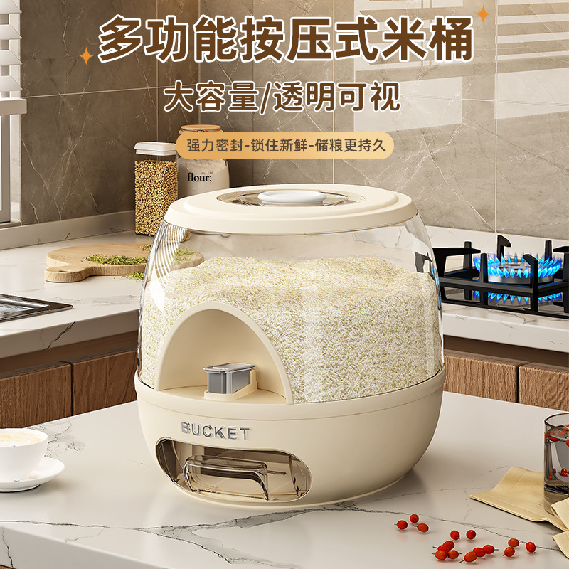 防潮爆款旋转米桶五谷杂粮收纳盒一键按压出米透明可视厨房储米箱