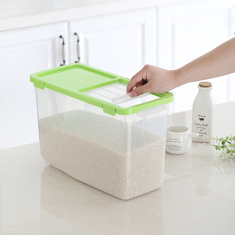 Ember beras rumah tangga 20kg, kotak ember beras dapur dengan tutup penyimpanan, anti serangga, pasang lima biji-bijian tersegel