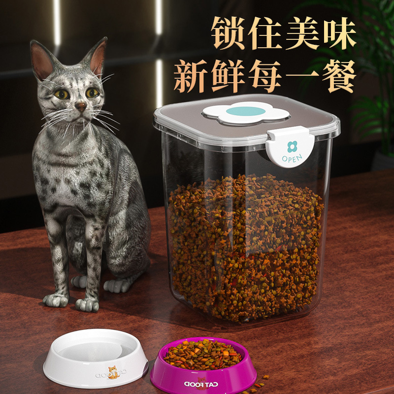 Ember penyimpanan makanan kucing, wadah penyimpanan makanan hewan peliharaan disegel makanan kucing kotak rumah tangga ember tersegel vakum tahan kelembapan