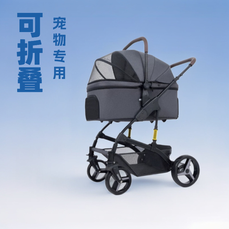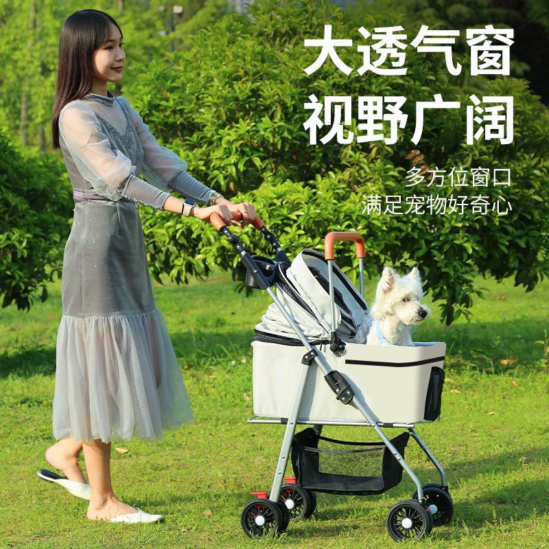 Troli hewan peliharaan ringan dapat dilipat anak anjing khusus mobil berjalan Bayi perlengkapan tamasya kucing anjing kecil medium