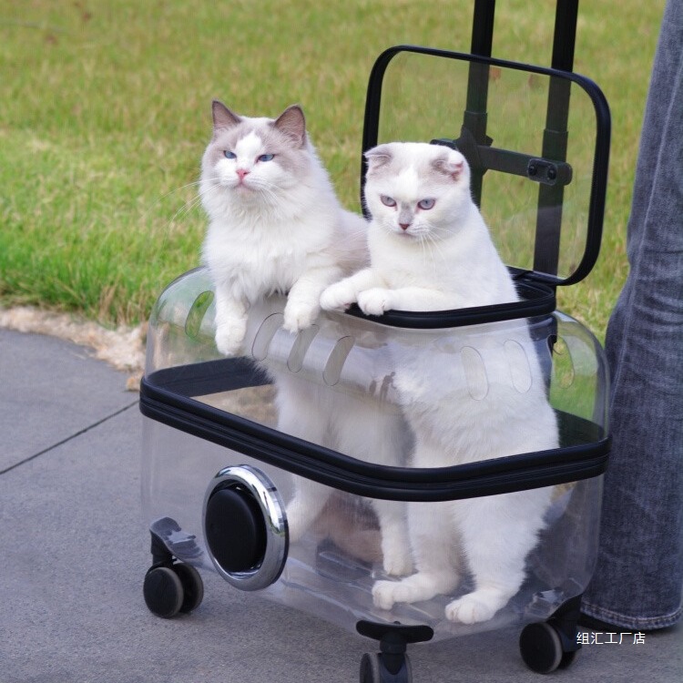 Tas Troli Hewan Peliharaan Tas Kucing Portabel di Luar Tas Ransel Kucing Ganda Troli Hewan Peliharaan Transparan Dua Tas Kucing