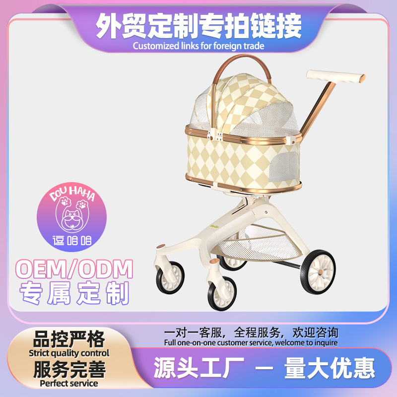 Gao Jingchao kereta dorong anjing hewan peliharaan mewah, tamasya kelas atas troli hewan peliharaan kucing mobil hewan peliharaan mewah dapat dilipat