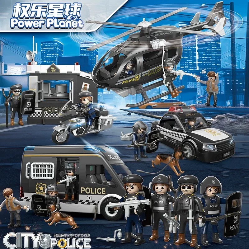 Teka-teki lintas batas anak-anak merakit adegan blok bangunan polisi khusus mobil polisi khusus anak-anak model besar hadiah anak laki-laki
