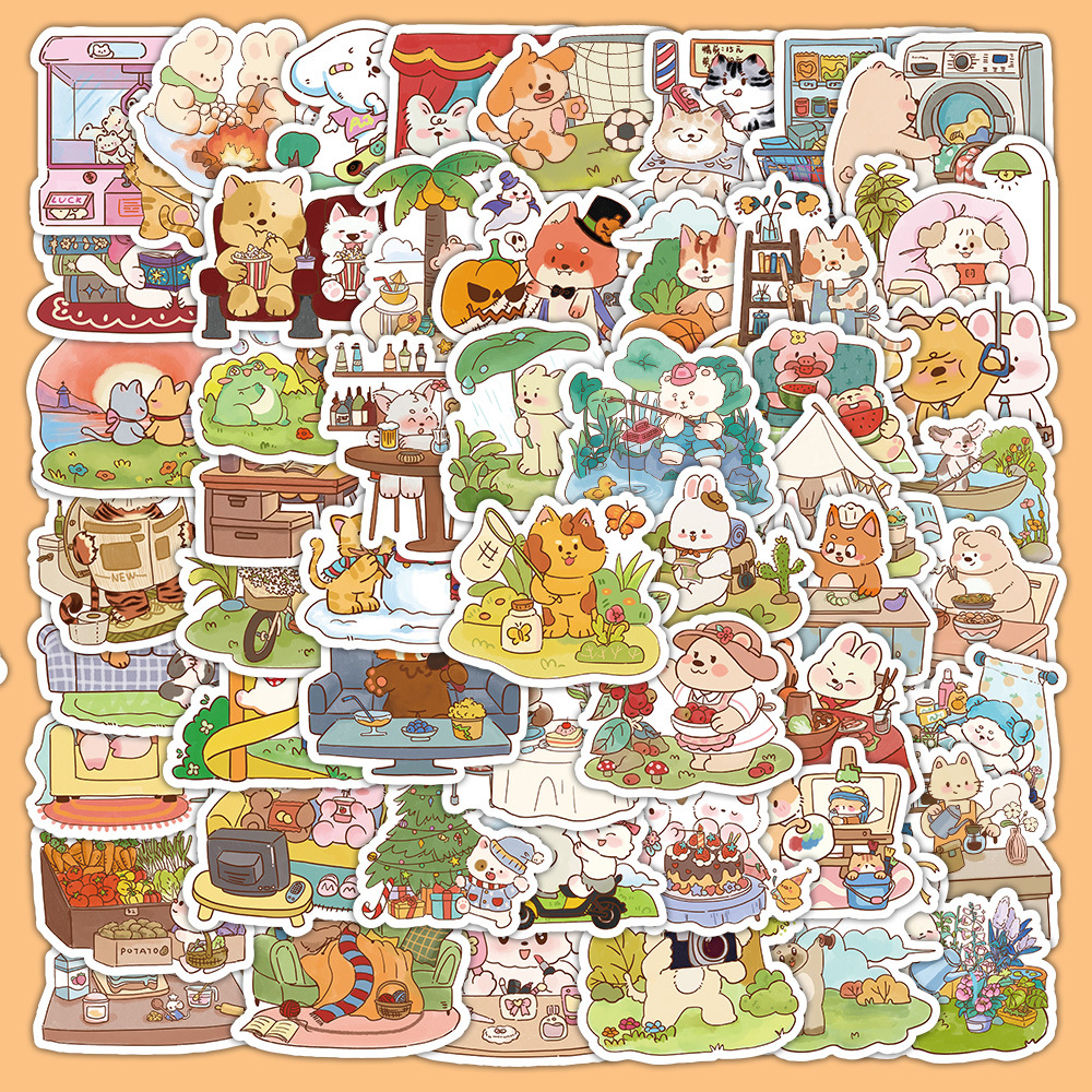 60 asli hewan kecil Hari stiker grafiti lucu kartun kelinci kucing casing ponsel casing skuter stiker