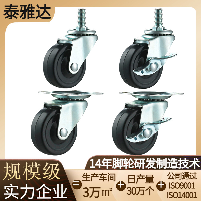 Penjualan langsung 1.5 inci 2 inci 2.5 inci 3-inci kastor karet industri roda universal pendingin udara katrol rol kandang hewan peliharaan