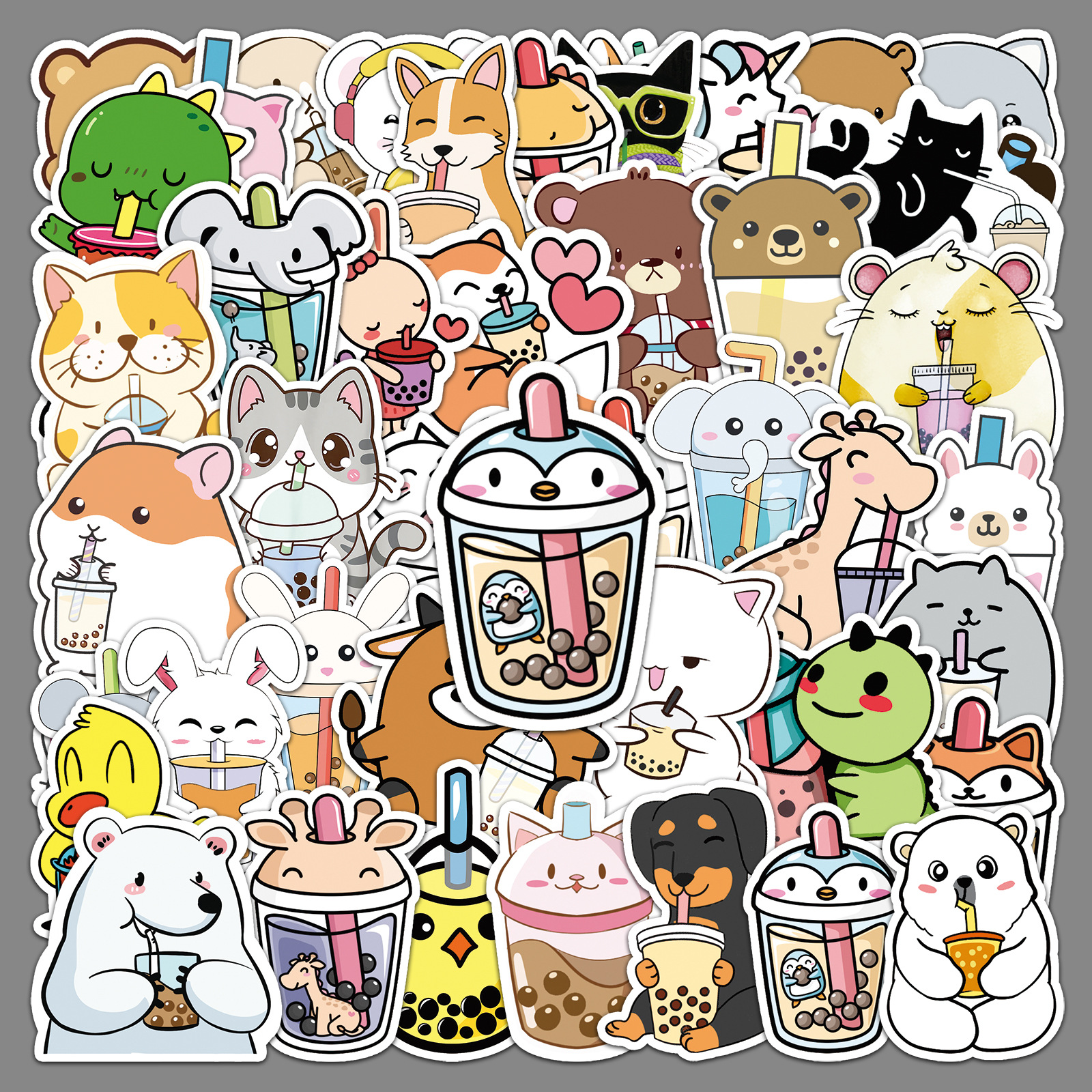 Stiker dekorasi sepeda motor, stiker mobil koper sepeda motor skuter, stiker dekorasi pribadi, teh susu hewan kartun lucu 50
