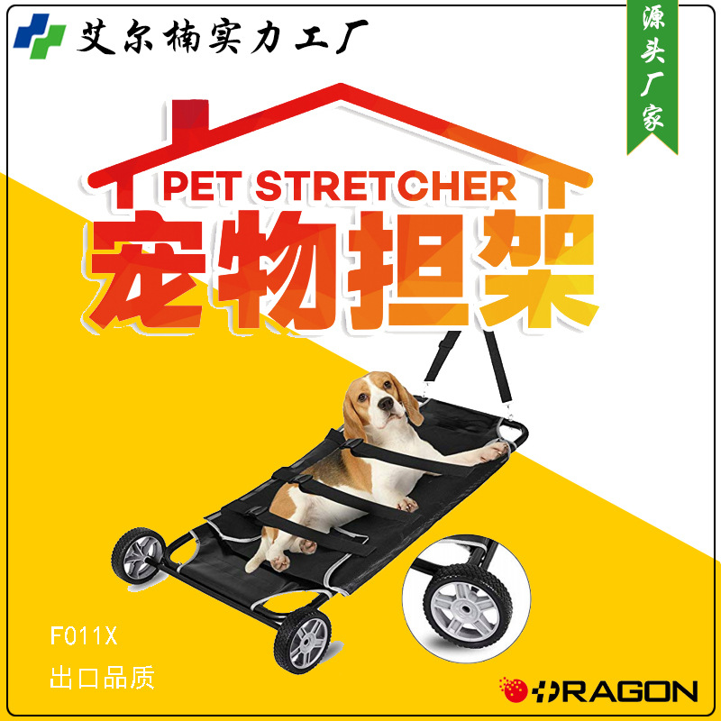 Karbon baja perenggang hewan peliharaan anti-gigitan kecil hewan penyelamatan troli pola besar 4-roda darurat tandu pabrik dalam stok
