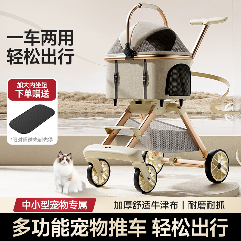 Kereta dorong hewan peliharaan multifungsi, berpenampilan mewah, dapat dilipat, dapat dilepas, terbuat dari paduan aluminium, ringan, modis, kereta dorong universal untuk kucing dan anjing